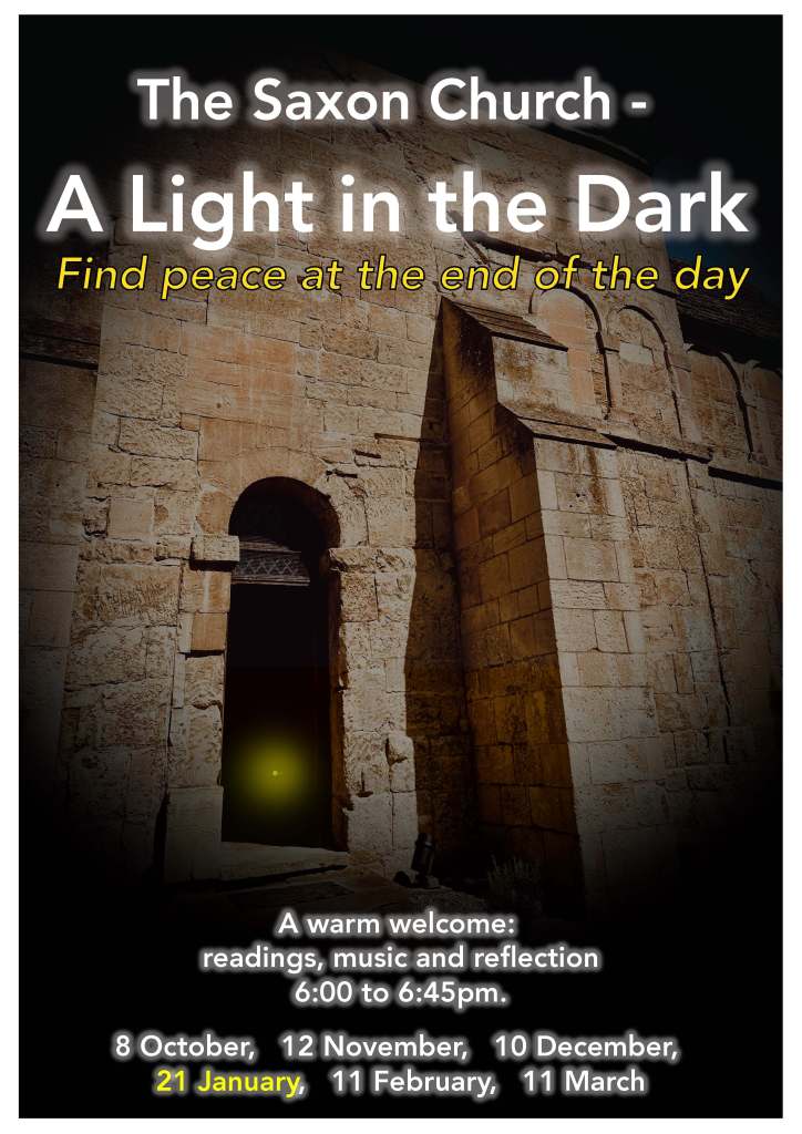 Join us for an hour of reflection at the Saxon Church as the nights get darker through the winter. Please note that the event scheduled for 14 January will now take place on the 21 January.